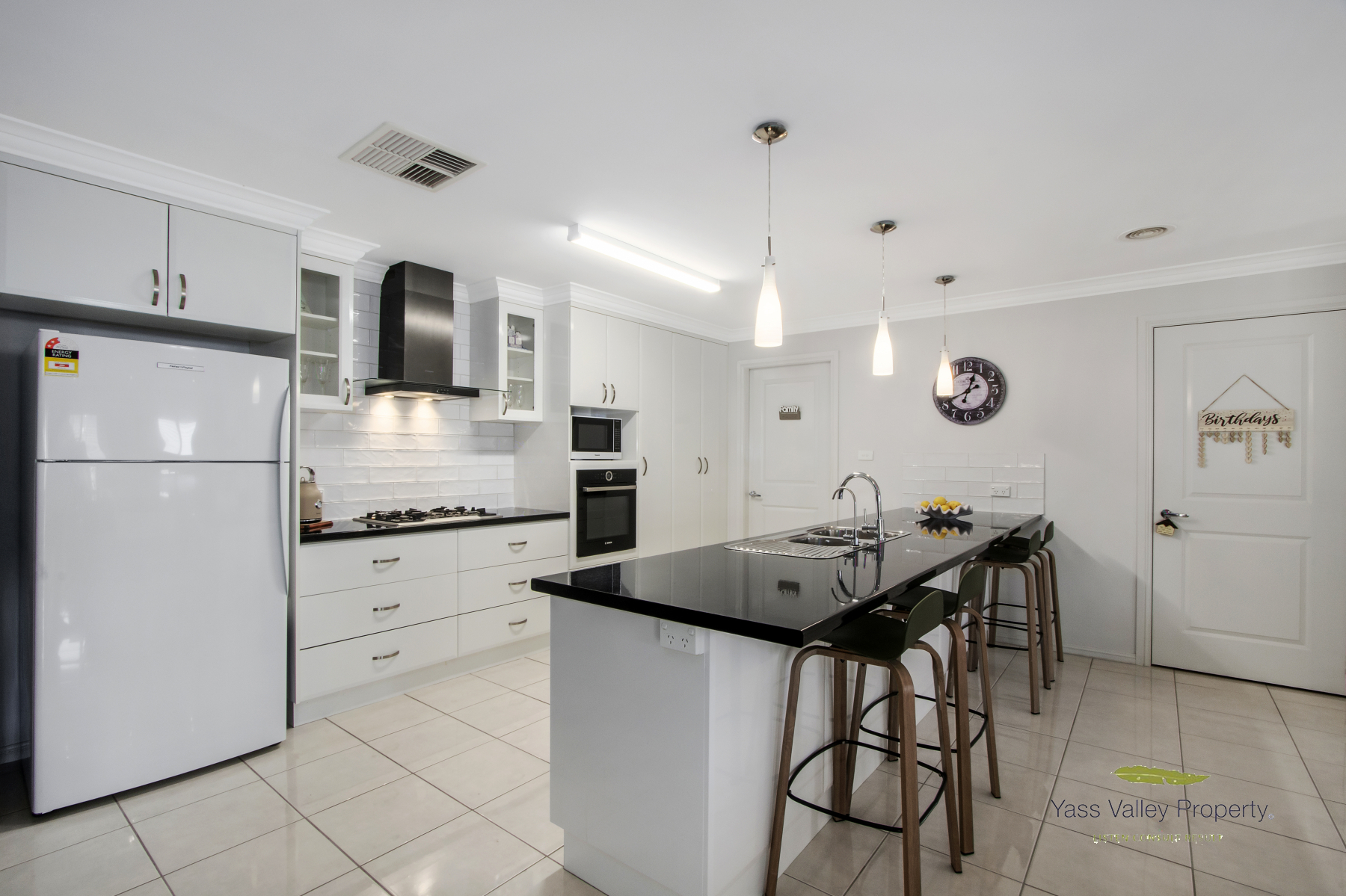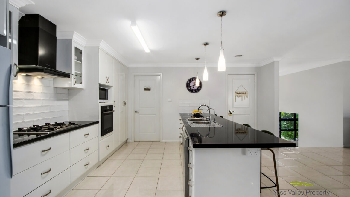 *Galley kitchen, breakfast preparation bench seating up to six, central sink, dishwasher, wall oven, gas stove top, range hood, pantry, display cupboards