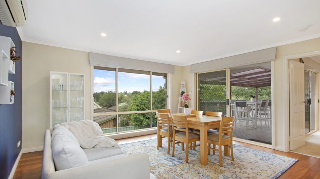 Through to the family/ dining room with a large window framing the northerly view over Yass. Polished hardwood floors, RCAC