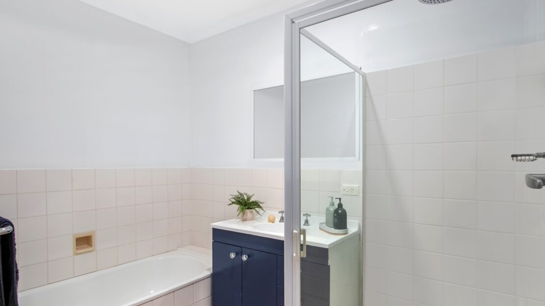 Two-way family bathroom, shower & bath, vanity