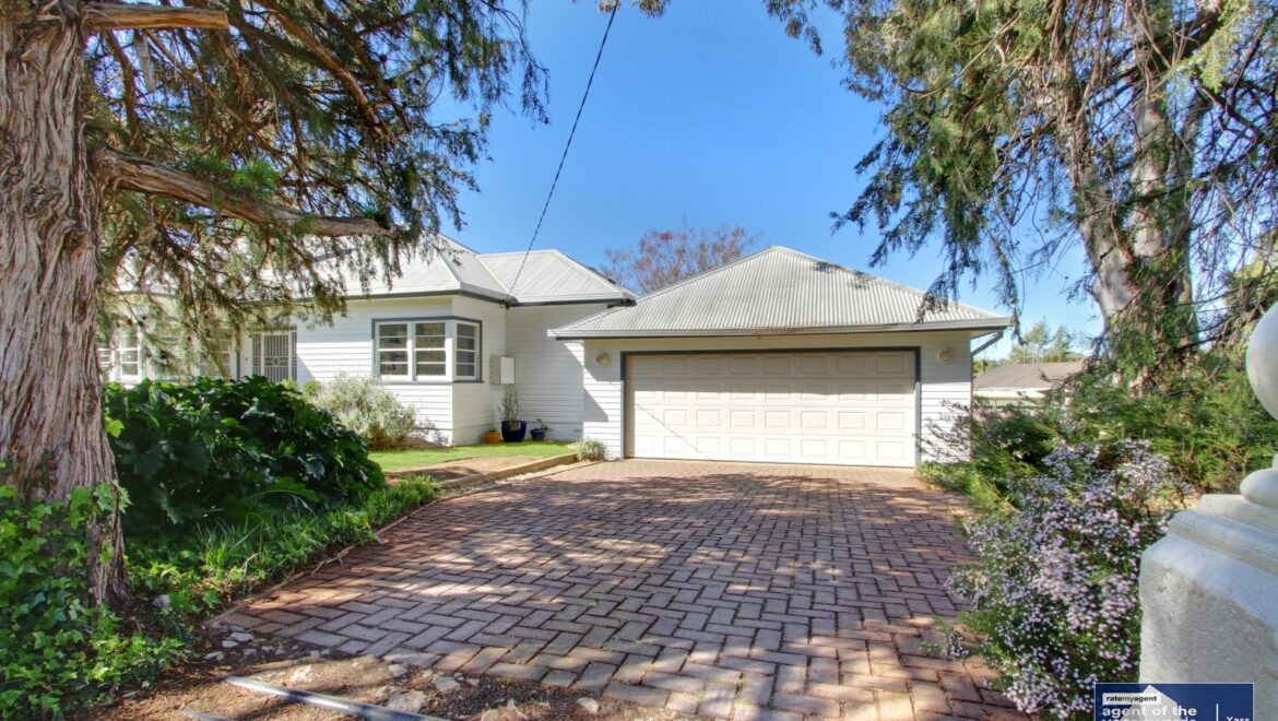 Distinctive white weatherboard exterior, towering pines & spacious garden