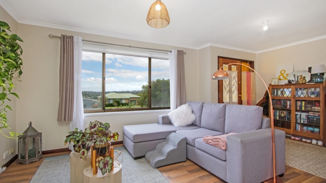 Open plan lounge room with RCAC, floating floors and views out over the Yass River gorge.