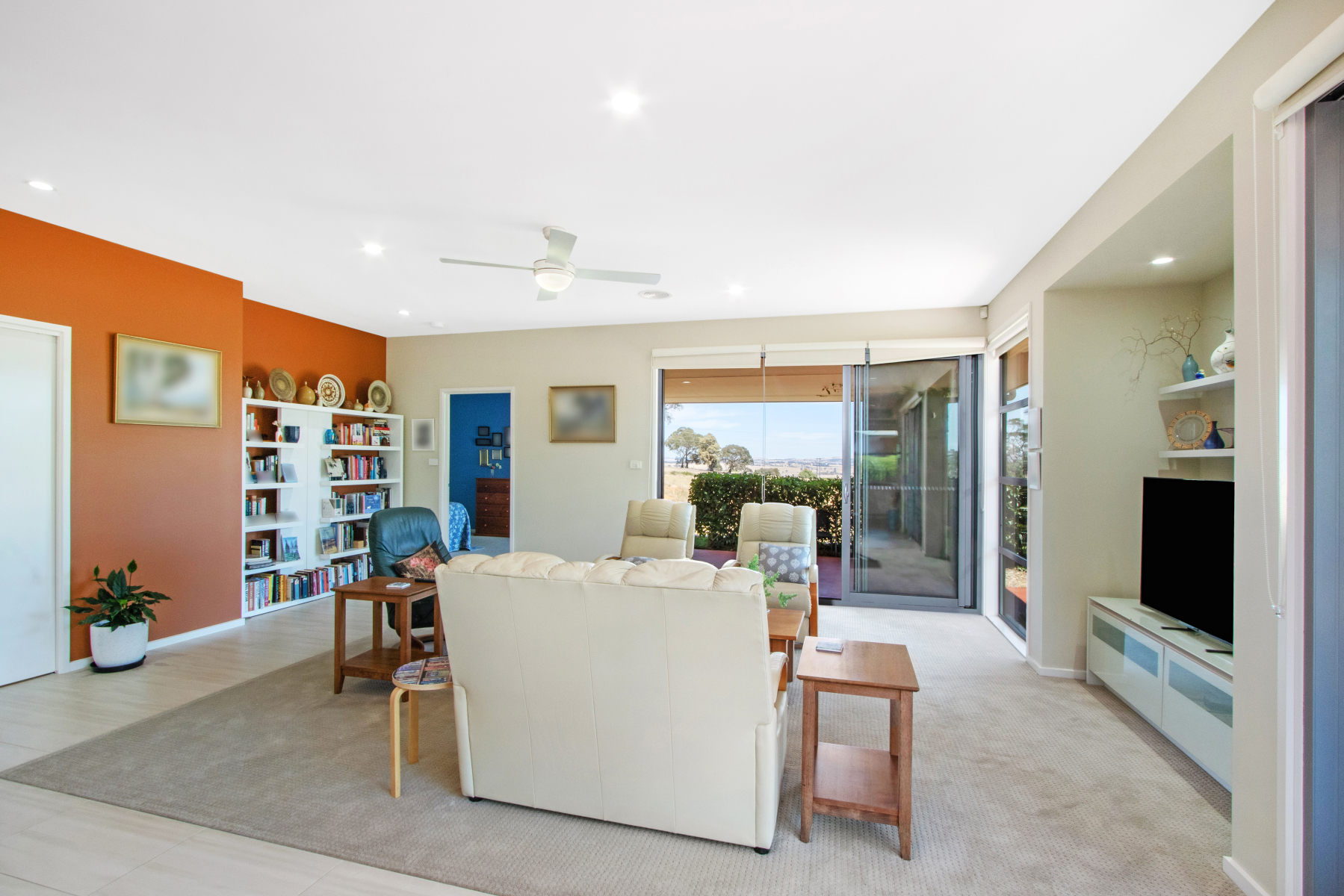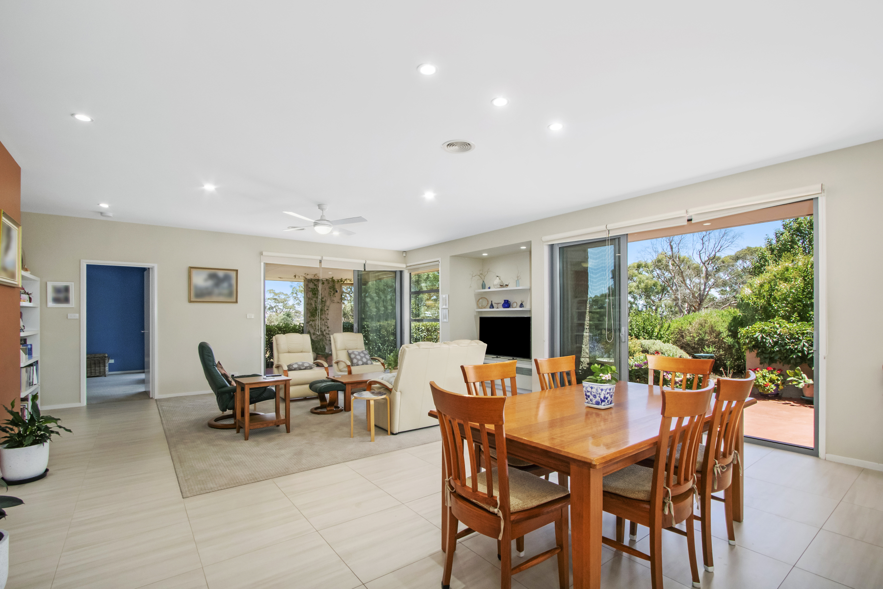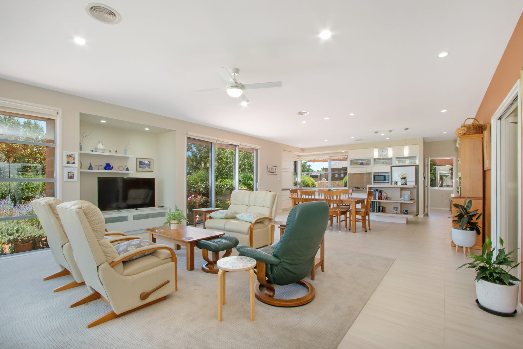 Open plan family room, tiled floor, opens to covered alfresco