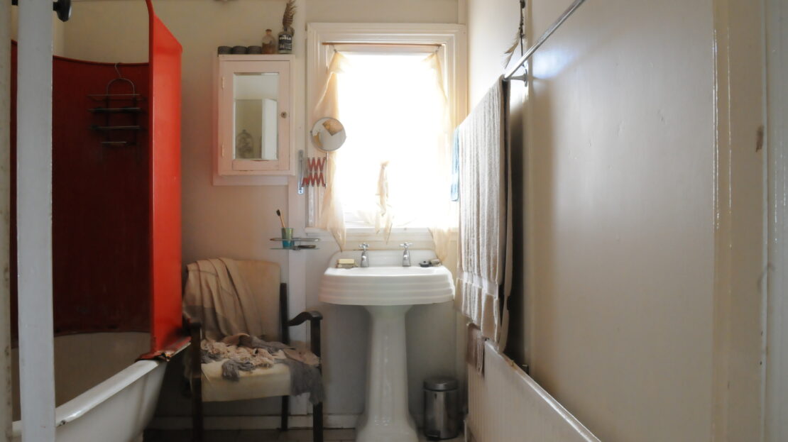 Family bathroom with shower over bath, wc & vanity