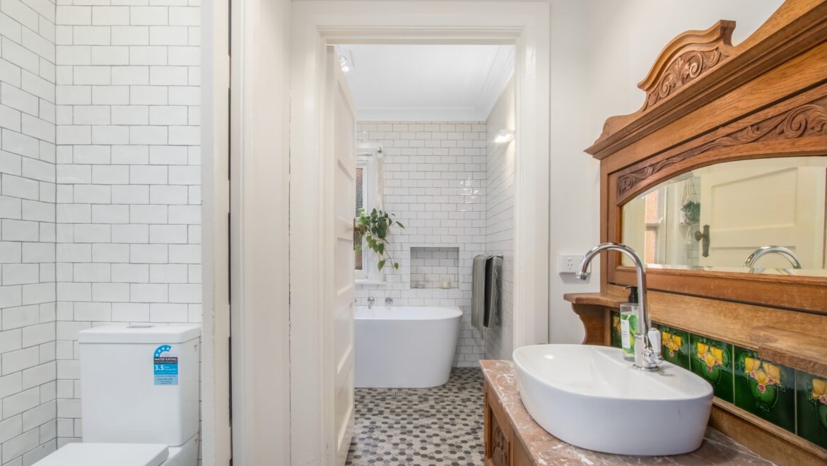 Three-way renovated bathroom with separate shower & bath, heated floor