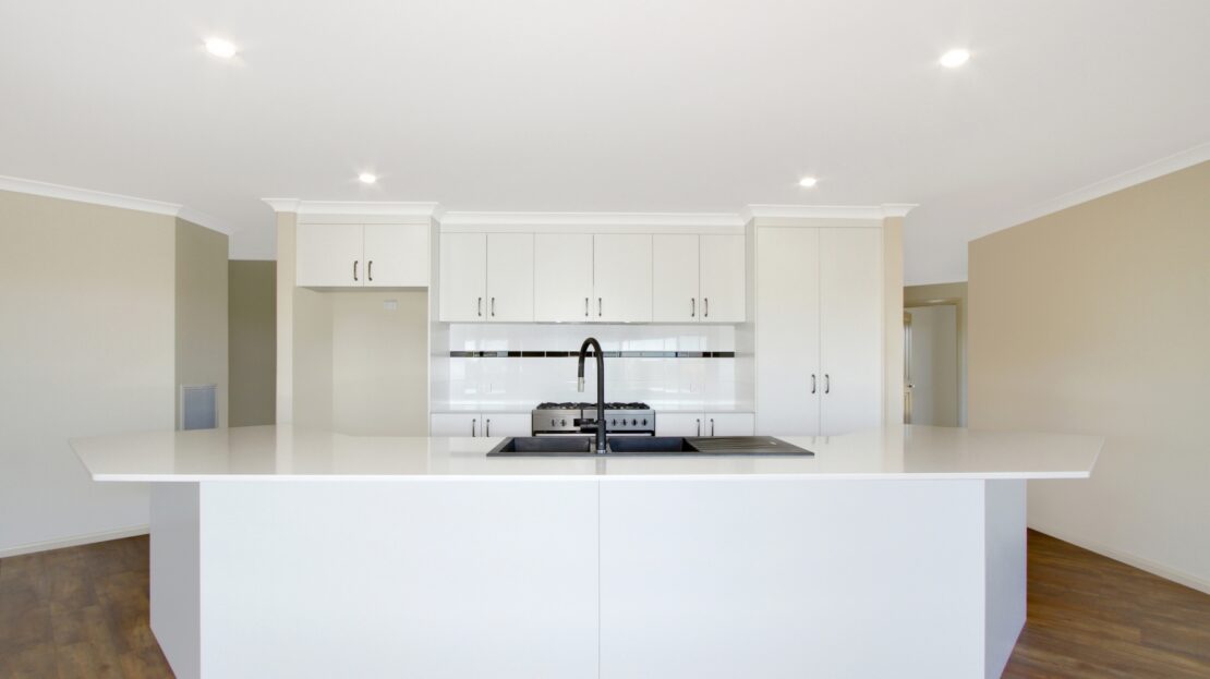 Natural light floods every room, with a beautifully open-plan family area combining the dining and kitchen spaces. The central island bench is both a statement piece and a practical workhorse, offering ample preparation space. The kitchen is a chef’s dream, boasting stone benchtops, sleek black fittings, a dishwasher, and a 900mm Westinghouse electric oven with a gas cooktop and dishwasher. Plus, there’s an abundance of storage and a large pantry to keep everything organised.