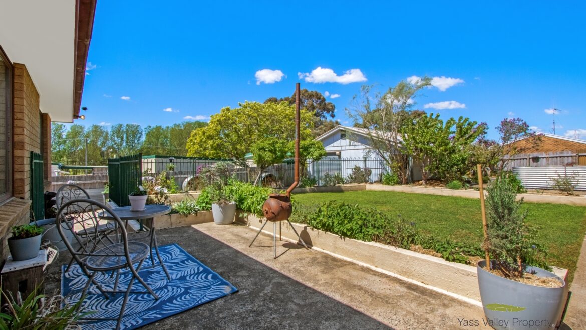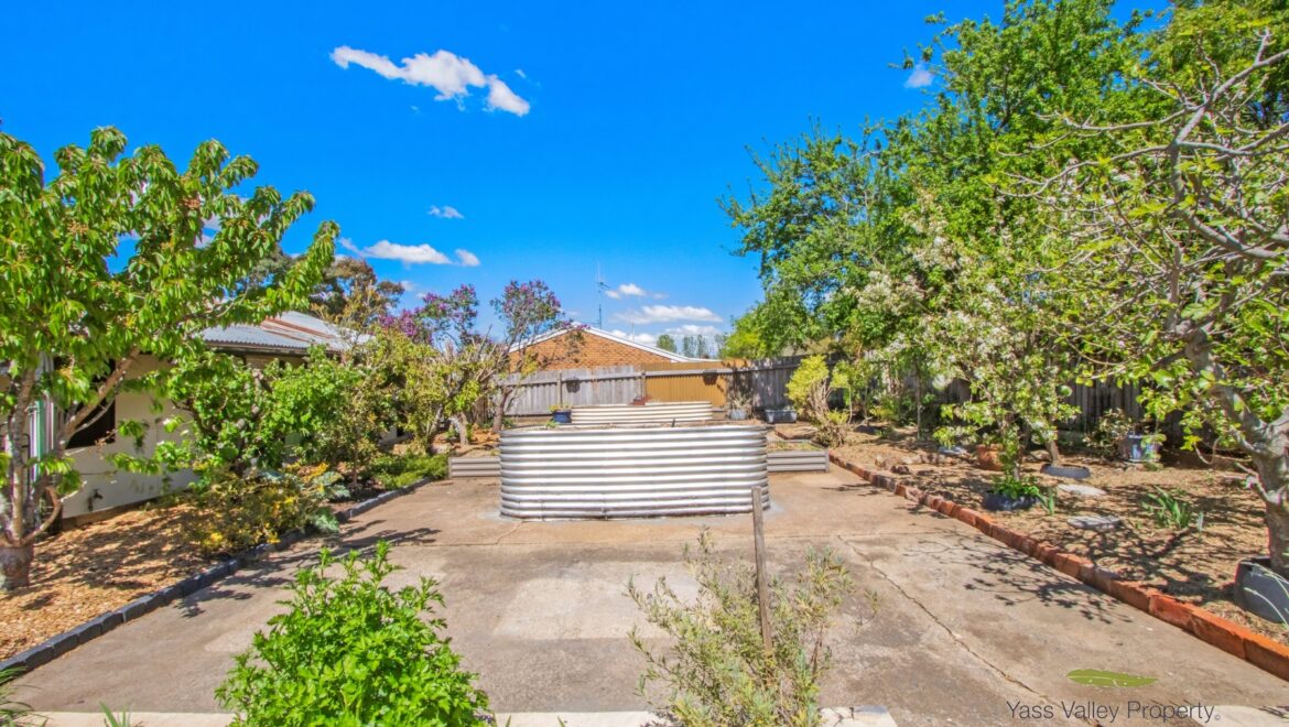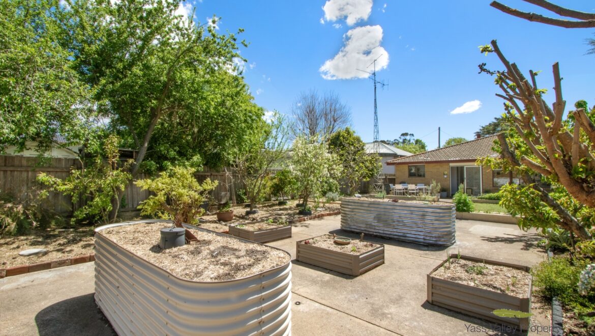 The established backyard boasts a variety of fruit trees that deliver a generous harvest year after year and raised garden beds for future vegetable plantings – a true delight for garden lovers!