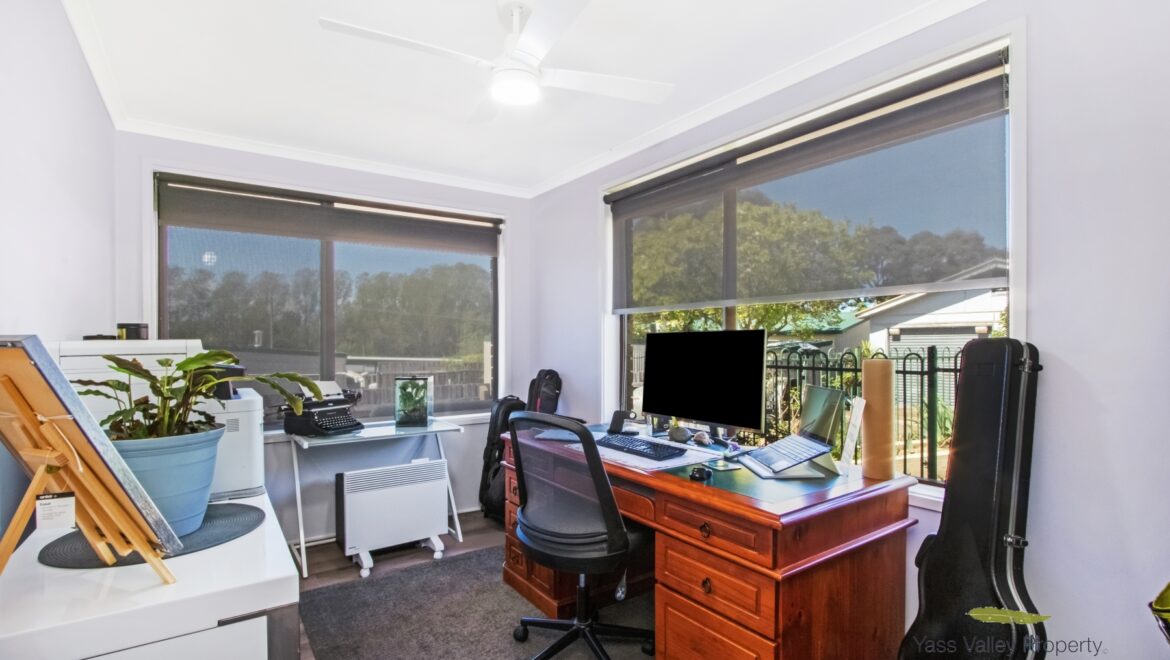 *Master bedroom at the front of the home with ceiling fan, built in robes, ensuite, dual block out and sun roller blinds