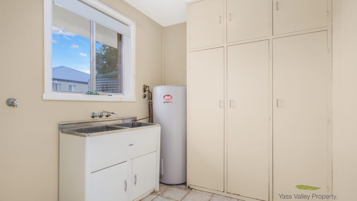 *Laundry off back veranda, concrete floor, twin tub, electric HWS, linen/storage