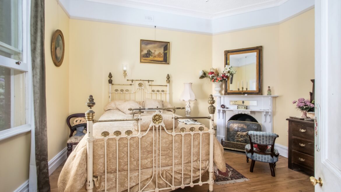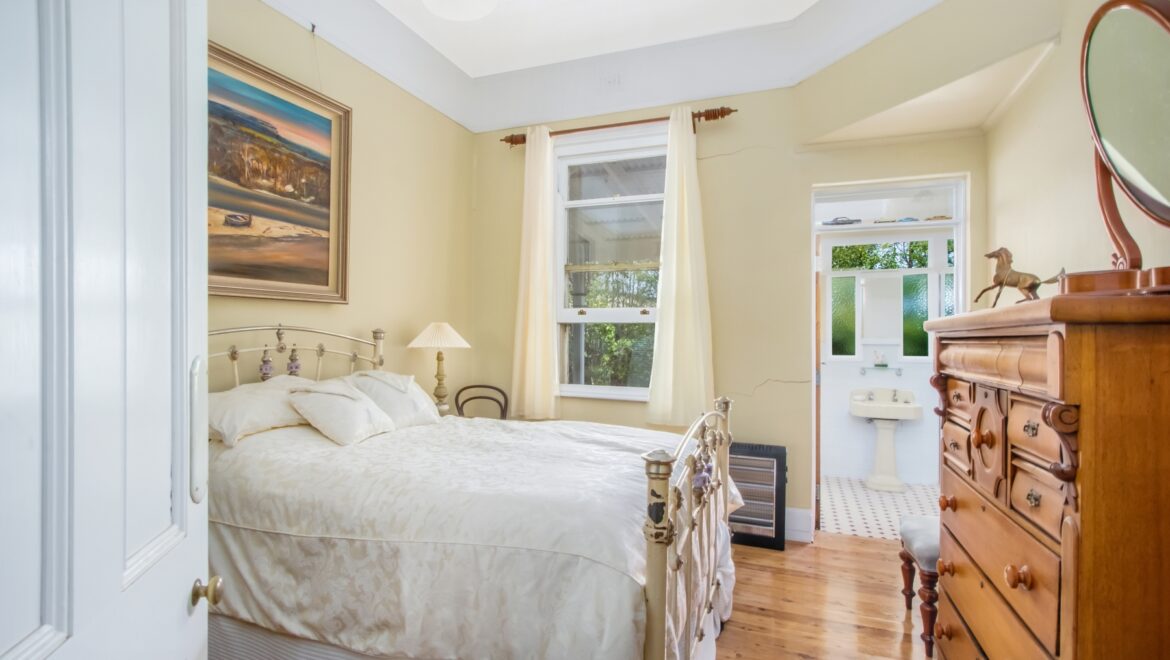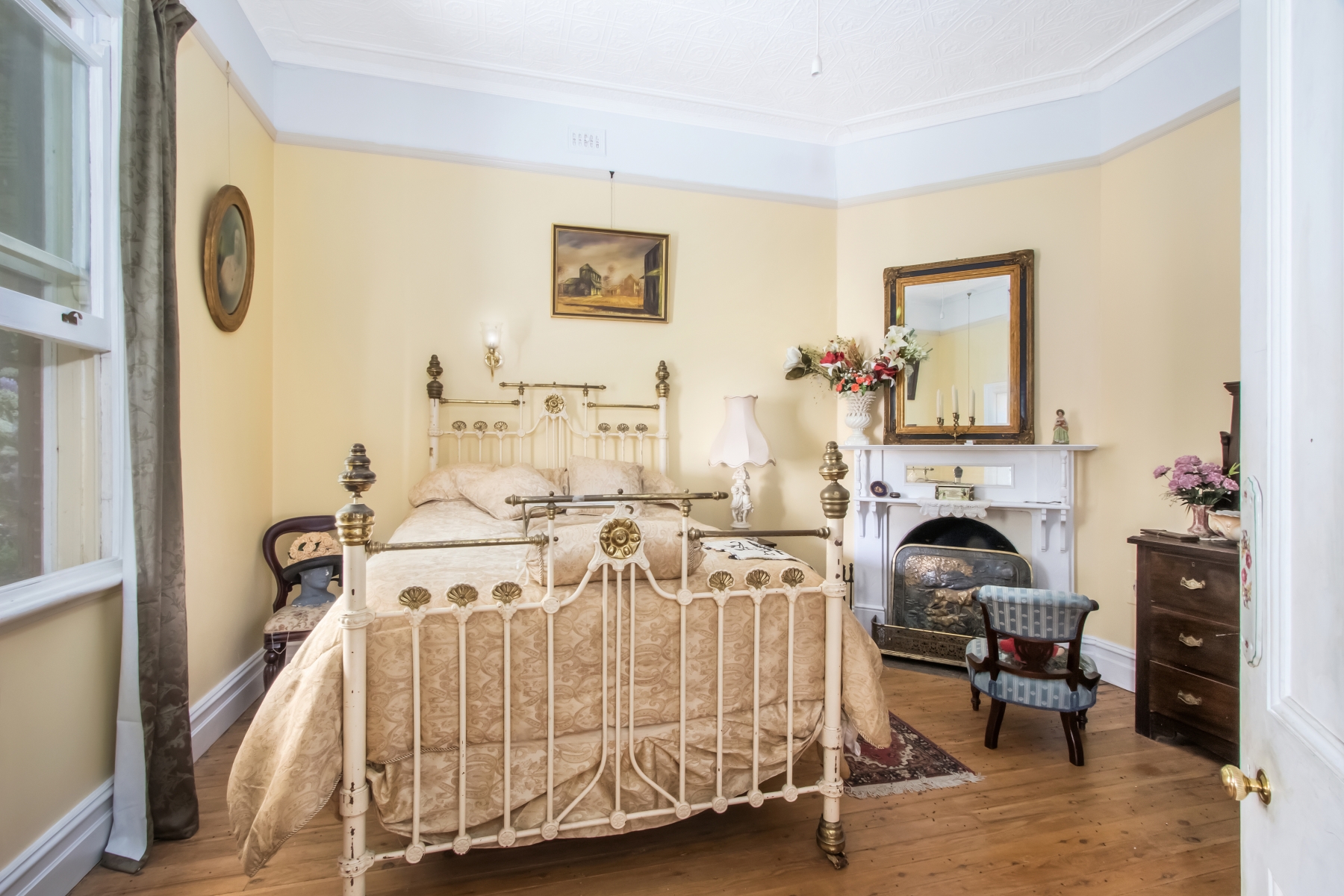 Three large bedrooms all with polished cyprus floors, high pressed metal ceilings & fireplaces
