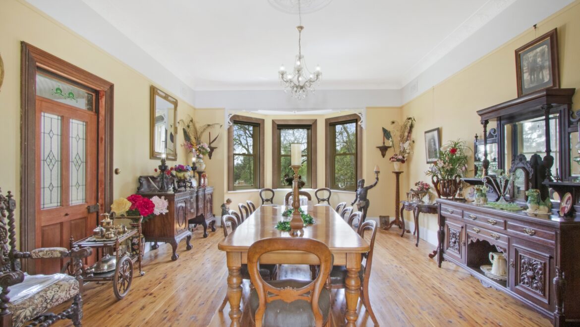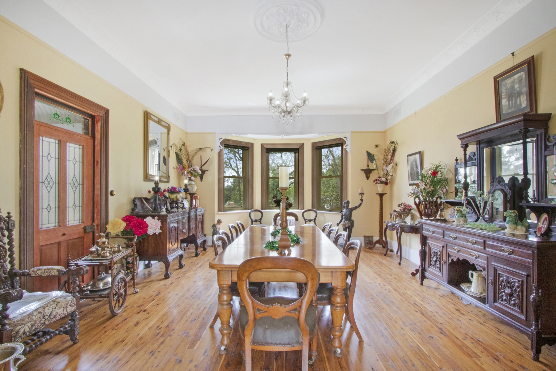 Large formal north facing dining room, airtight, double-glazed windows, cyprus floors, ceiling rose, bay window
