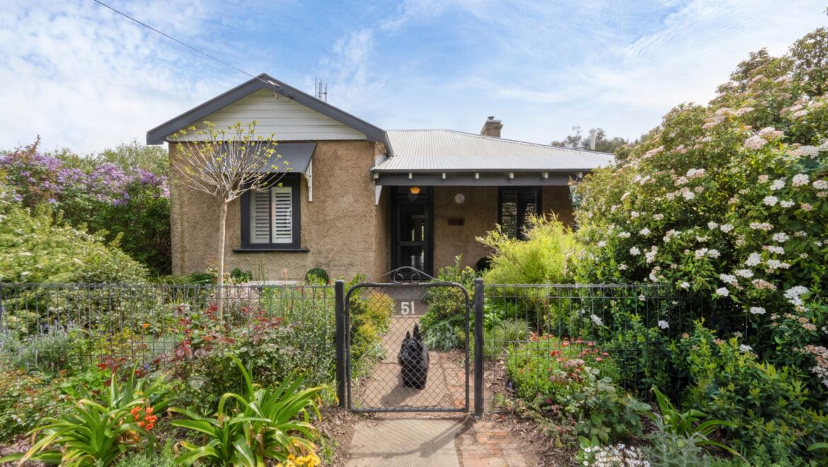 Truly brimming with character– high ceilings, decorative cornices, polished floorboards, and a warm country kitchen with sweeping views and surrounded by cottage gardens. This home warms the heart from the moment you enter through the front gate.