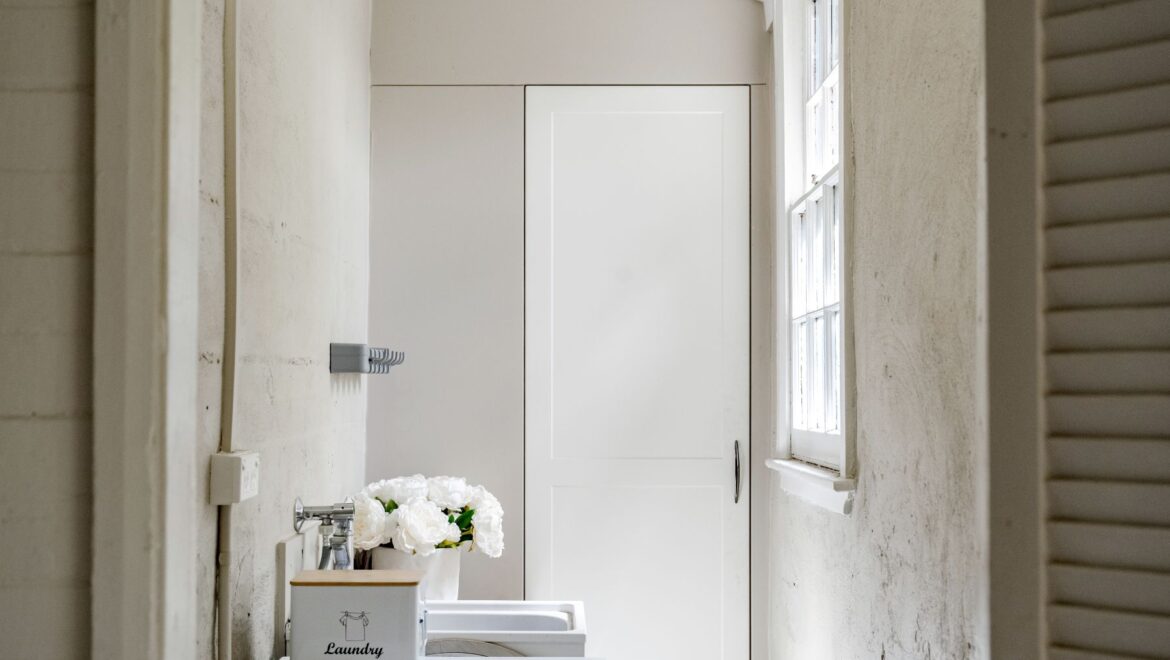 *Separate laundry with built-in linen storage for added convenience