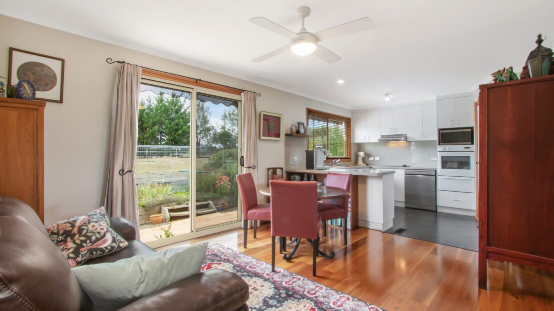 Large light filled lounge room with bay windows to frame the view, RCAC