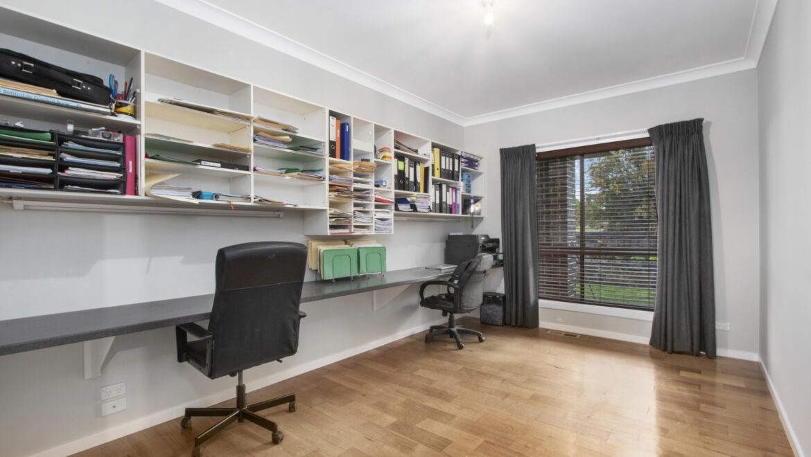 Large study with shelving & built in desk