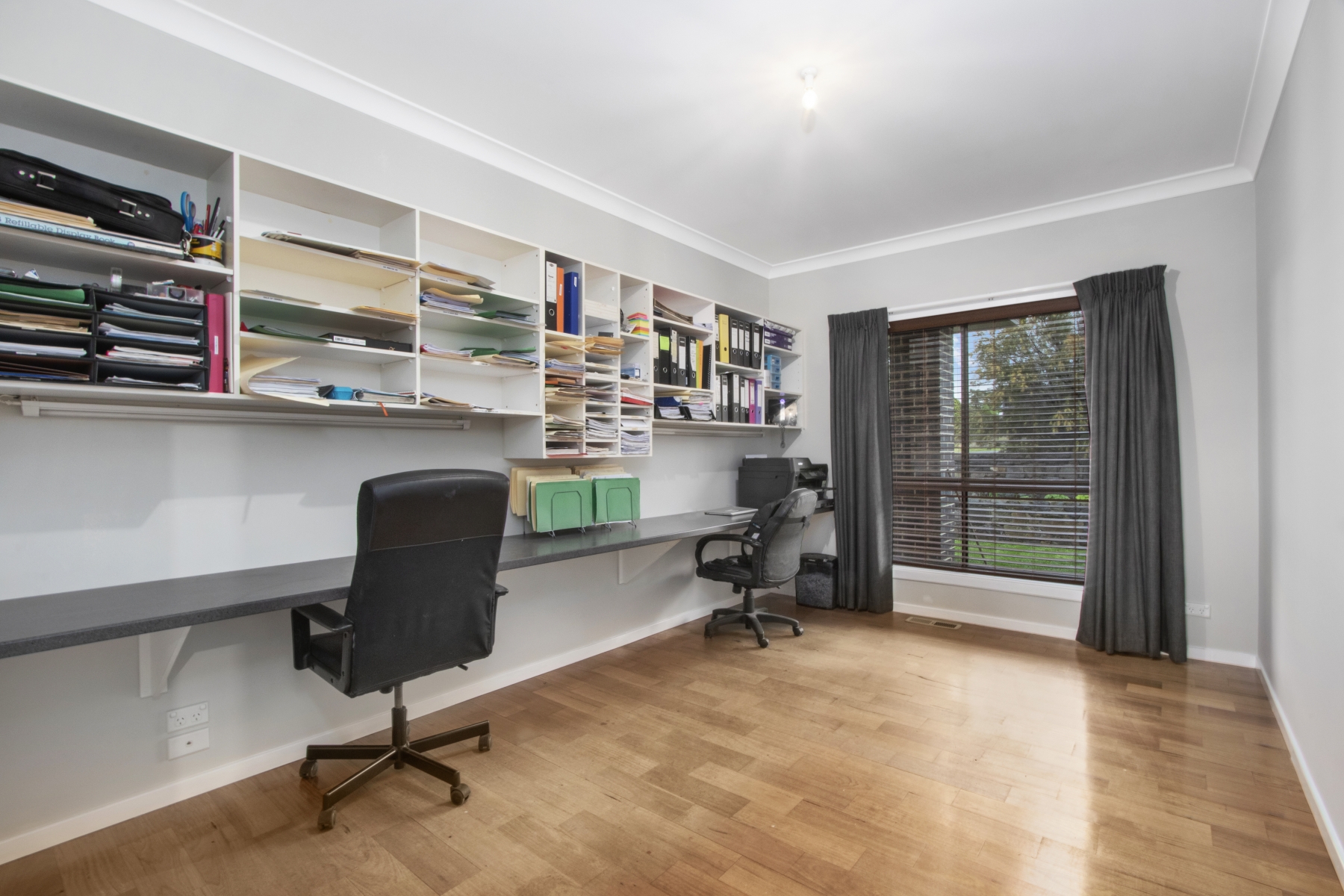 Large study with shelving & built in desk
