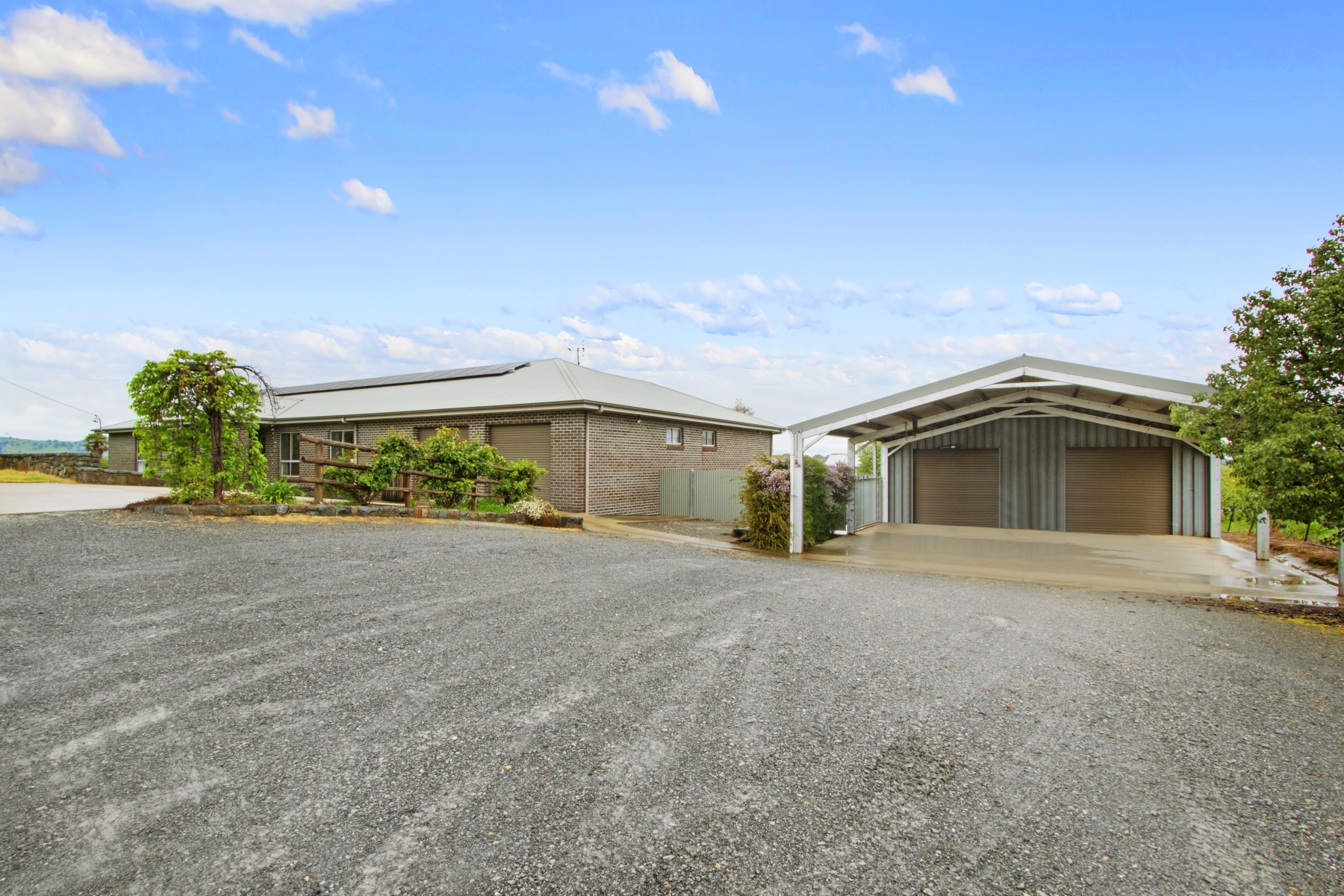 21 m x 9 m shed plus car port with 3 phase electricity, hot water, laundry tub, sink & toilet