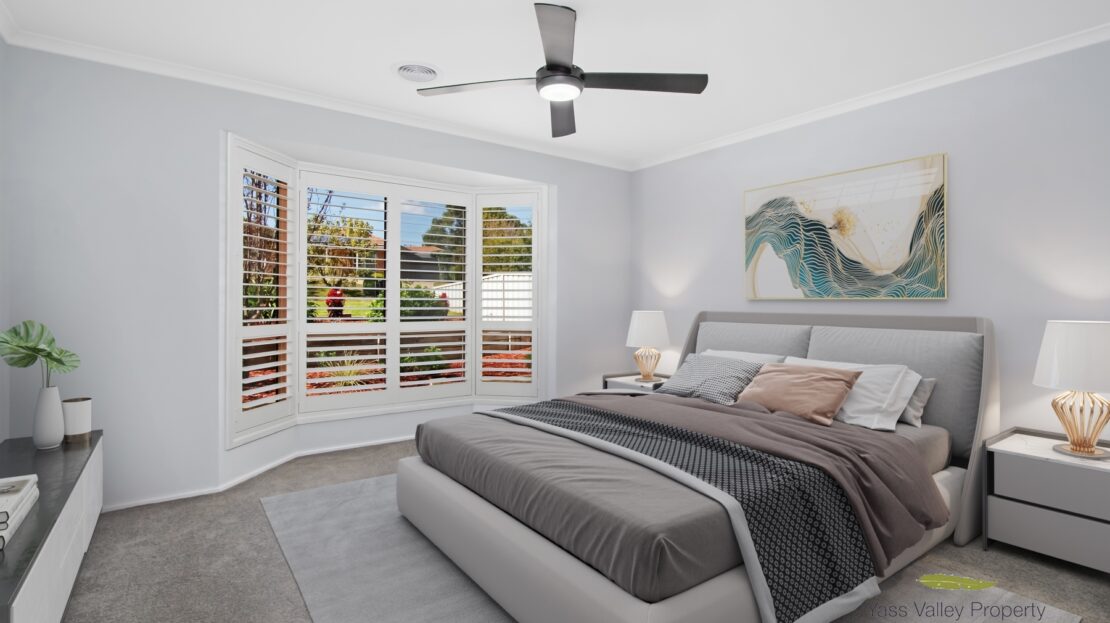 Master bedroom to the front of the home is a standout with walk in robe and private ensuite adjacent to this the formal living area, both enjoy filtered sunlight through planation shutters and bay windows adding to both rooms generous sizes. Further three generous bedrooms, two with built in robes, family 3-way bathroom centrally located complete with corner spa bath and shower, double basin vanity, stone bench top and separate toilet.
