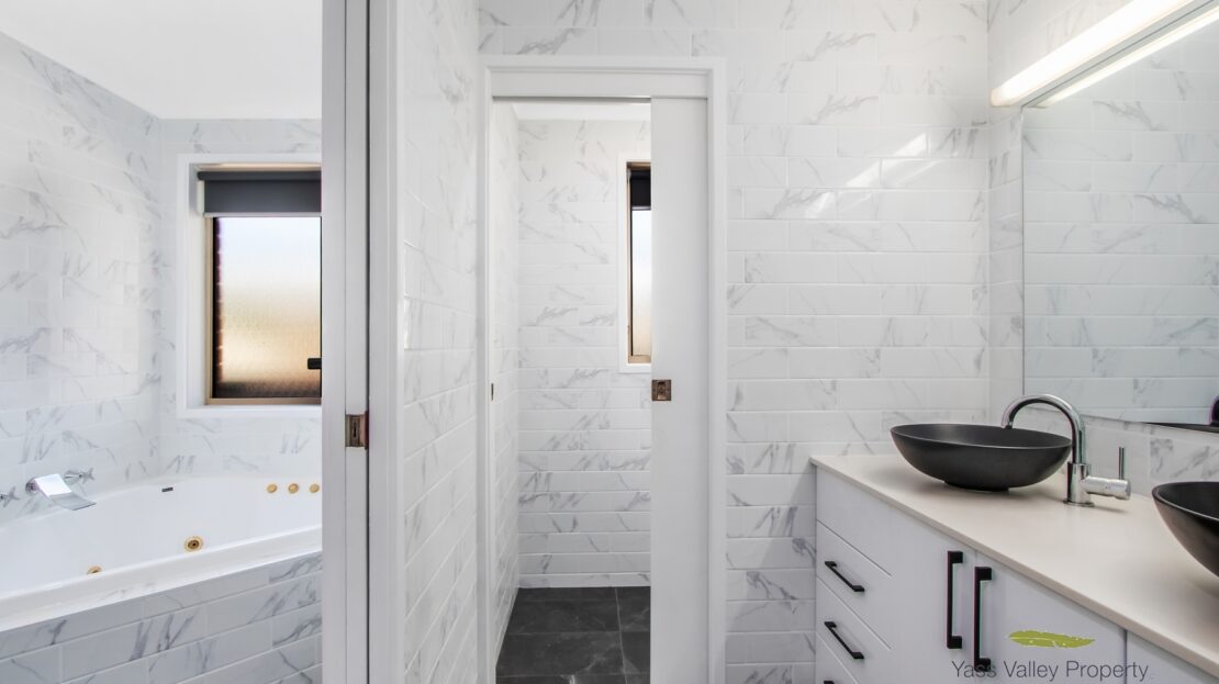 *Family 3-way bathroom with spa bath, stone vanity top