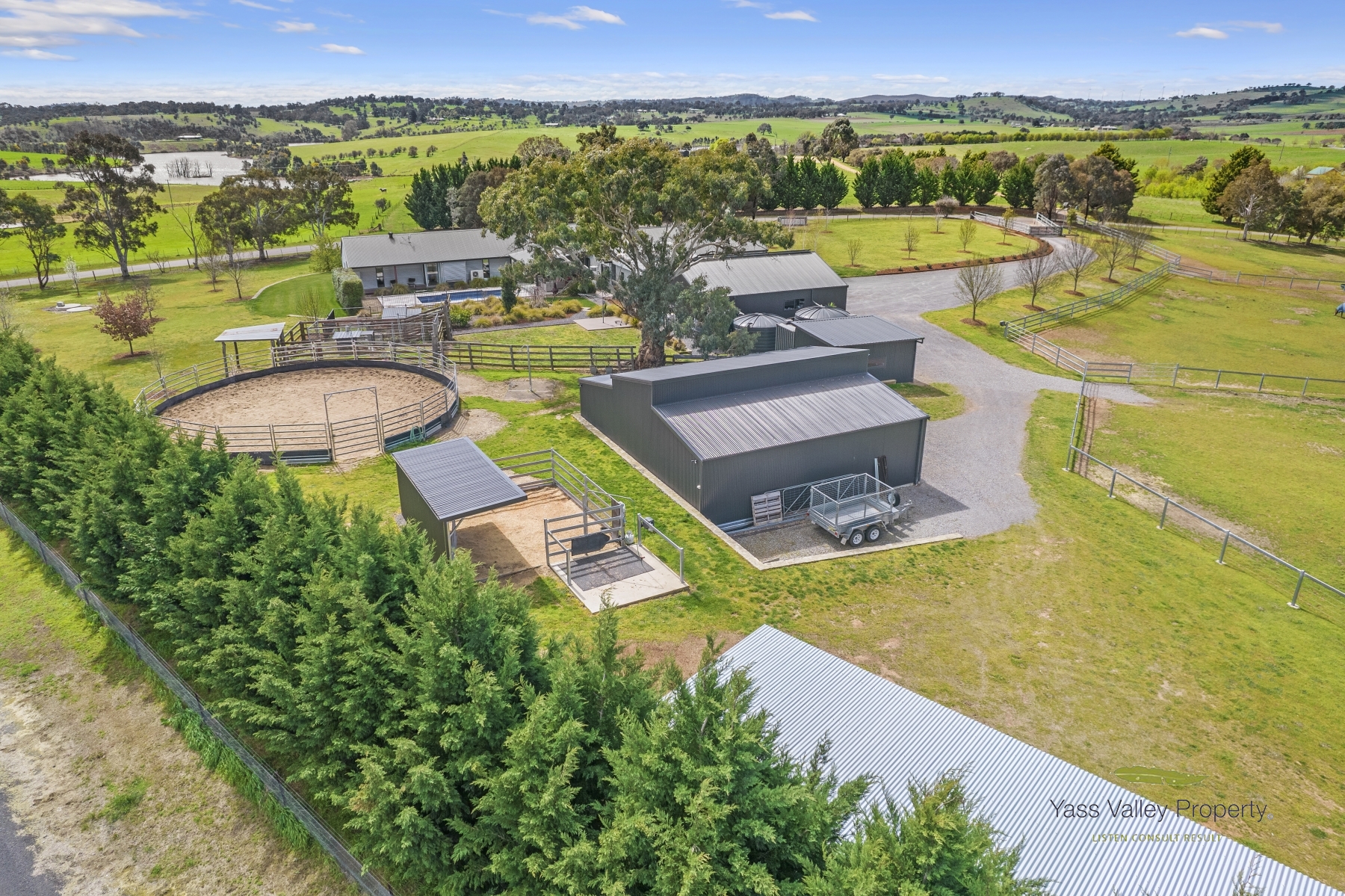 Outdoors, enjoy relaxing by the heated magnesium pool, two outdoor entertaining area options with pool views or Yass River Views, solar system, and extensive shedding including a 12m x 9m remote access shed and a 12m barn. Horse facilities include a sand arena, stables, foaling yard, and 5 paddocks with auto watering and electric fencing. All on a beautifully landscaped block within a tightly held estate within close proximity to Yass.