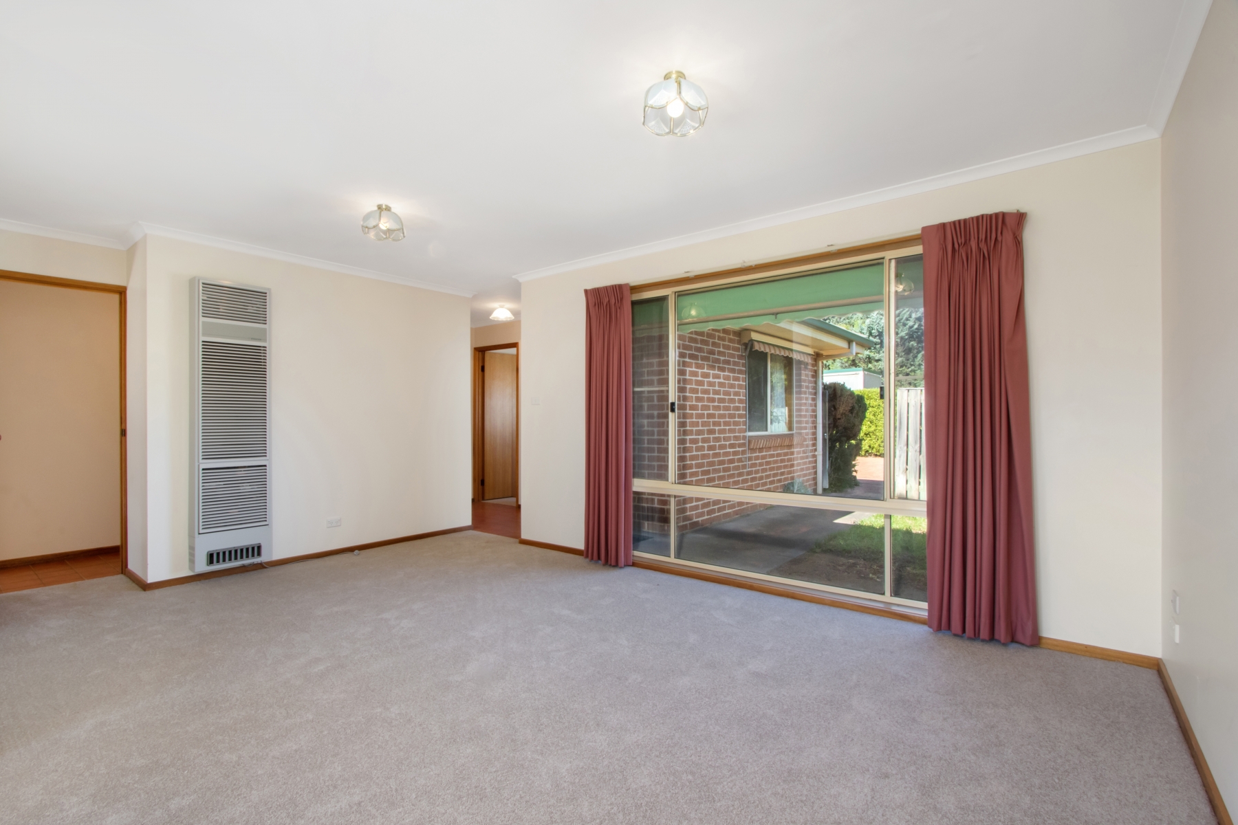 Master bedroom, overlooking the back courtyard, includes double built-in robes and new carpet, while the second bedroom also offers built-in robes and new carpeted flooring.